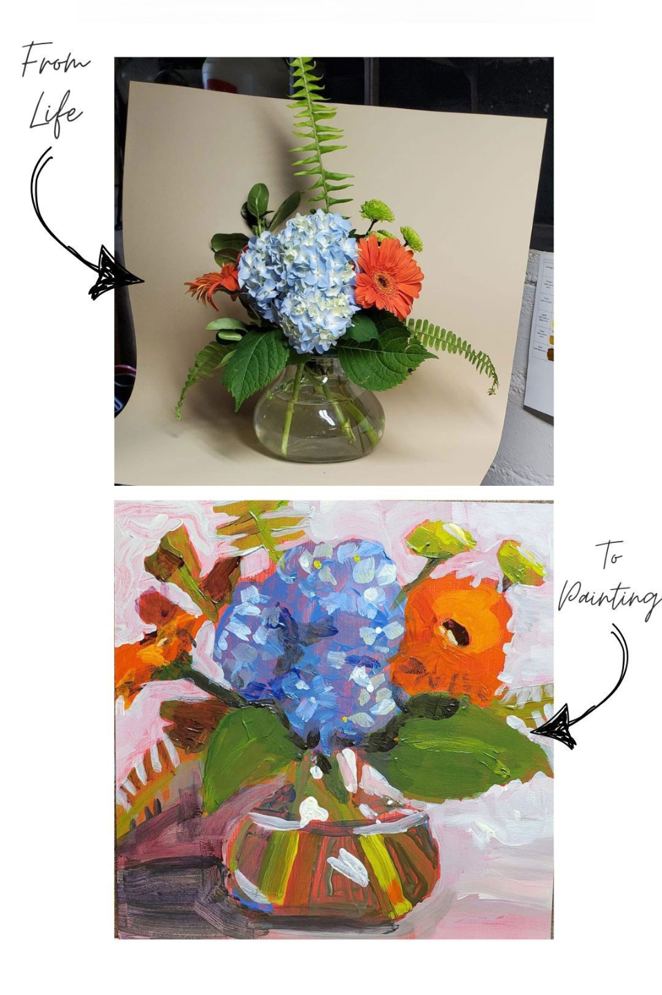 You won't rely on other people's photos but will be able to arrange a bouquet you want to paint and find just the right lighting. -